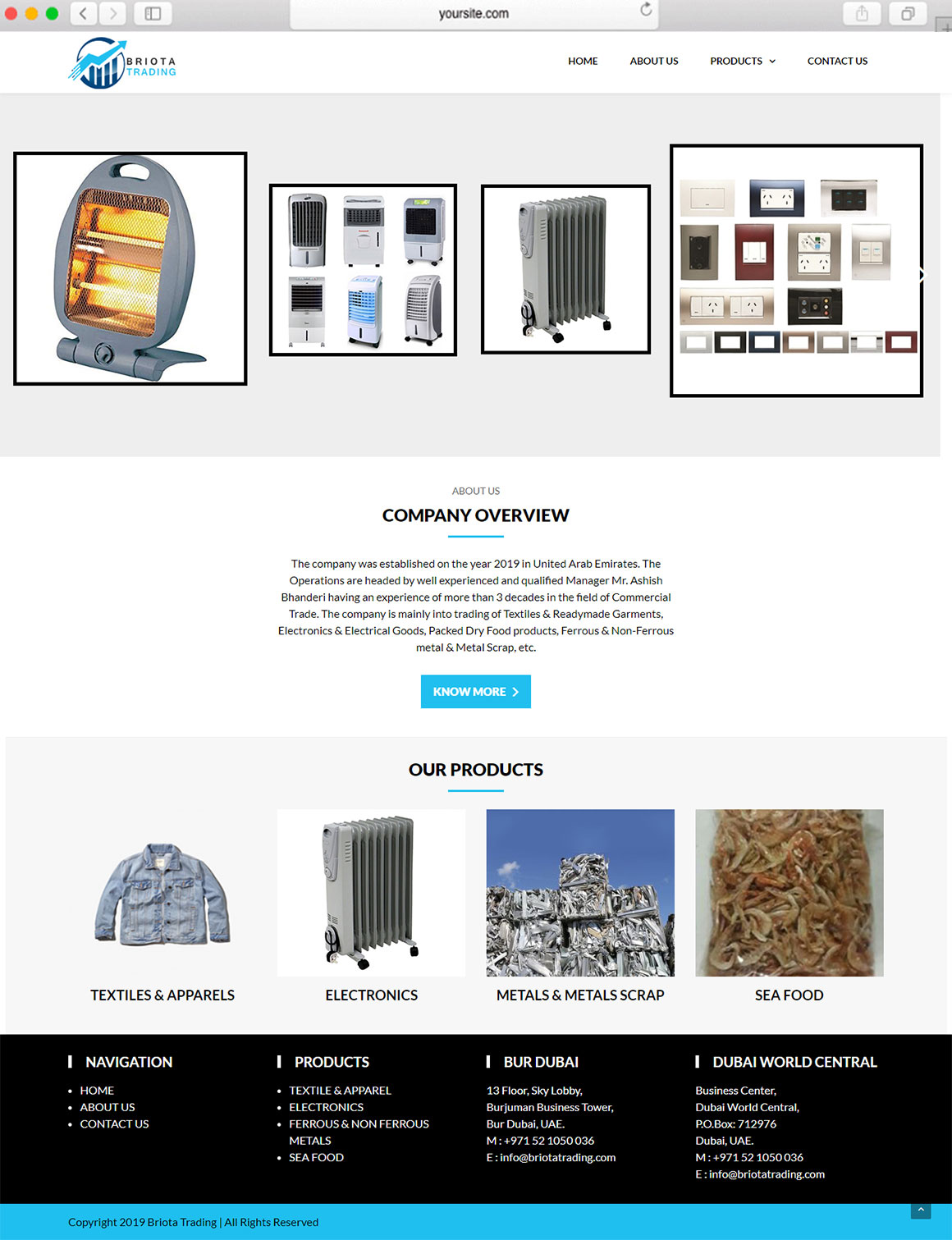 The company was established on the year 2019 in United Arab Emirates. The Operations are headed by well experienced and qualified Manager Mr. Ashish Bhanderi having an experience of more than 3 decades in the field of Commercial Trade.