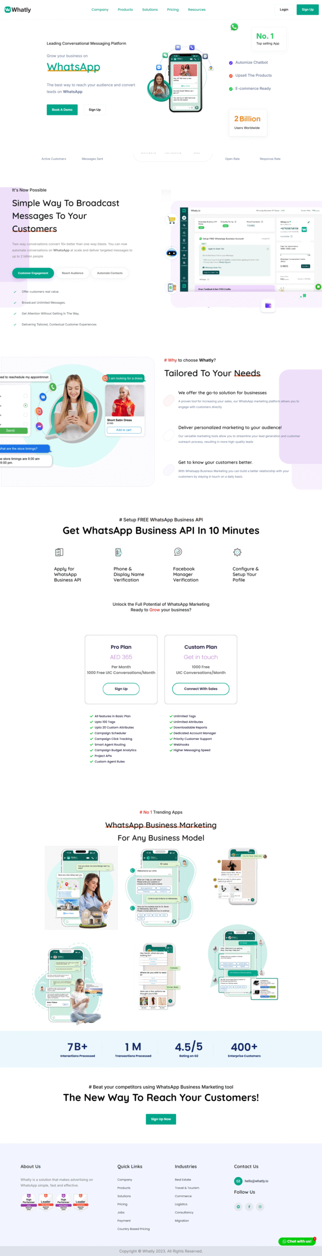 Whatly is a WhatsApp marketing platform that helps businesses promote products and communicate with customers.